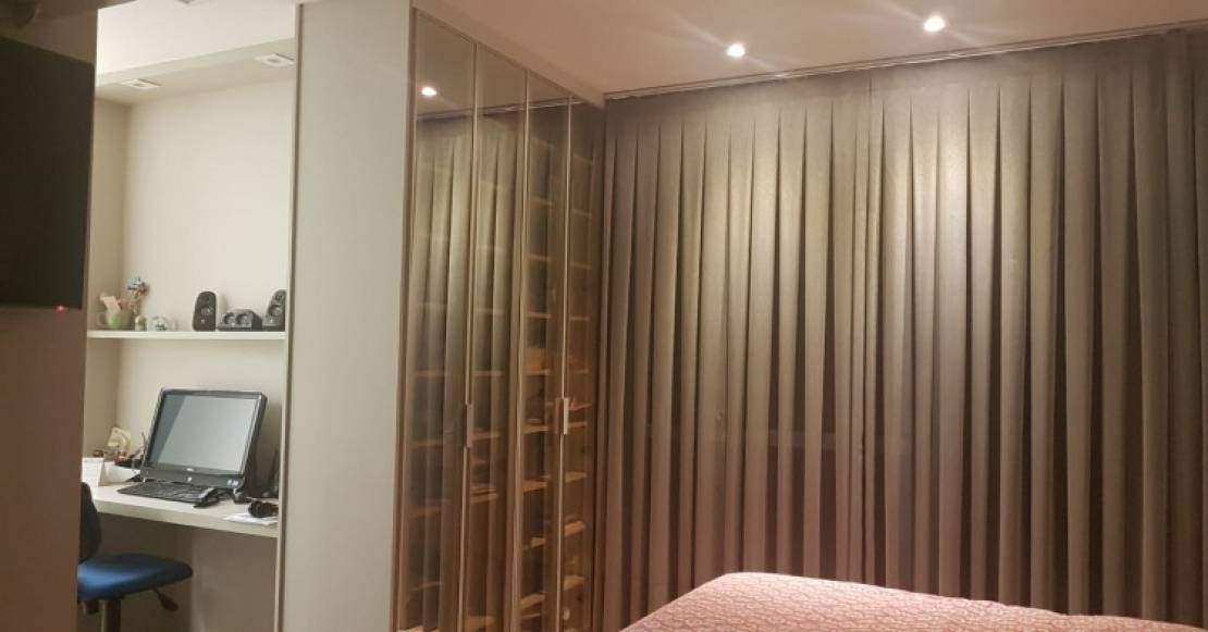 Quarto de empregada com armário planejado e banheiro