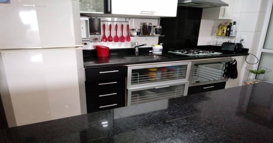 Cozinha Estilo Americano com balcão em granito, Armários Embutidos;