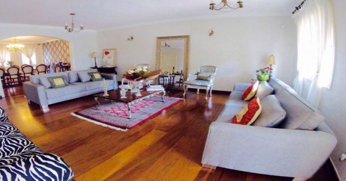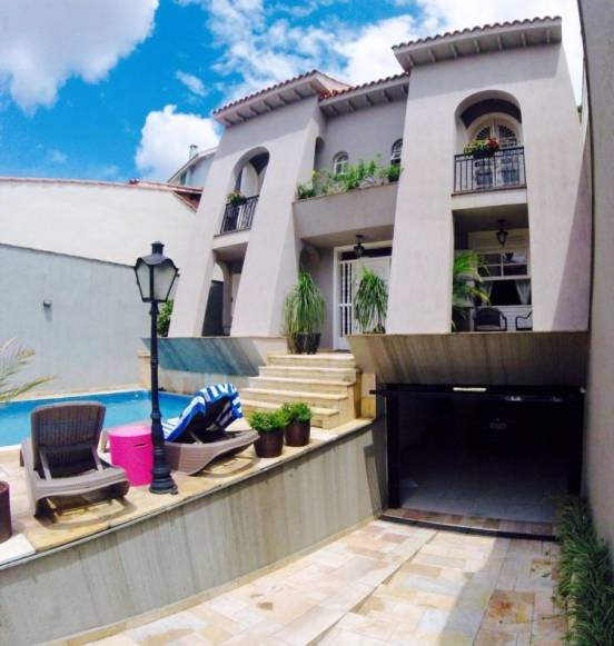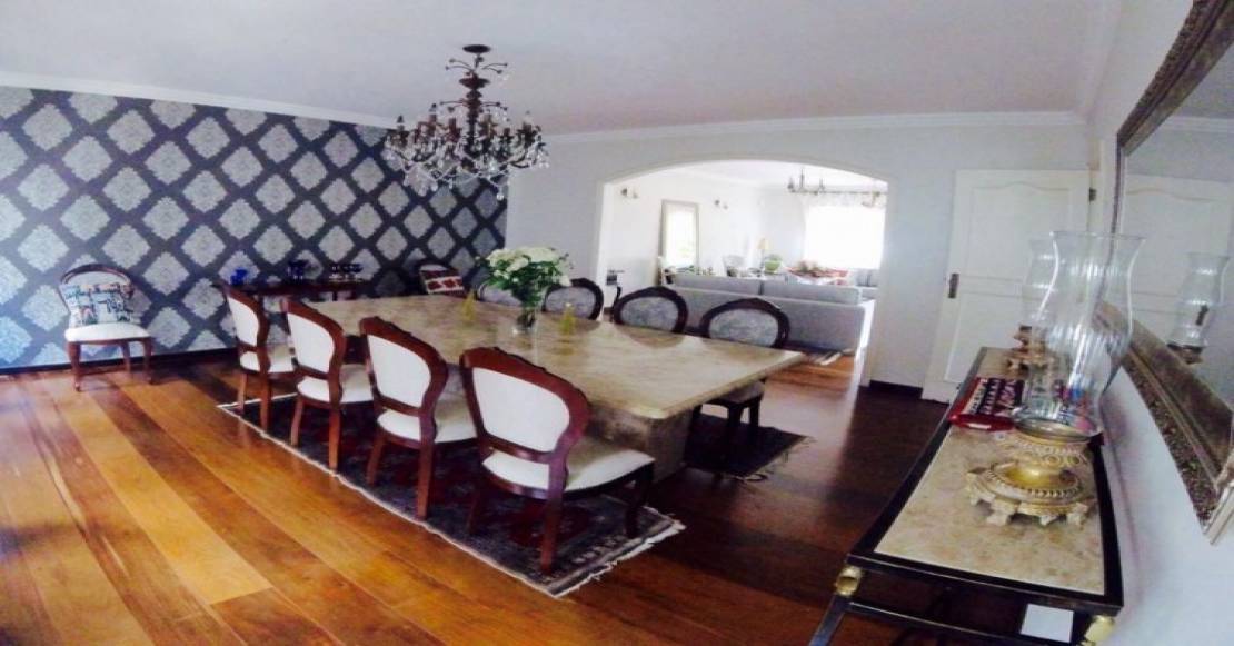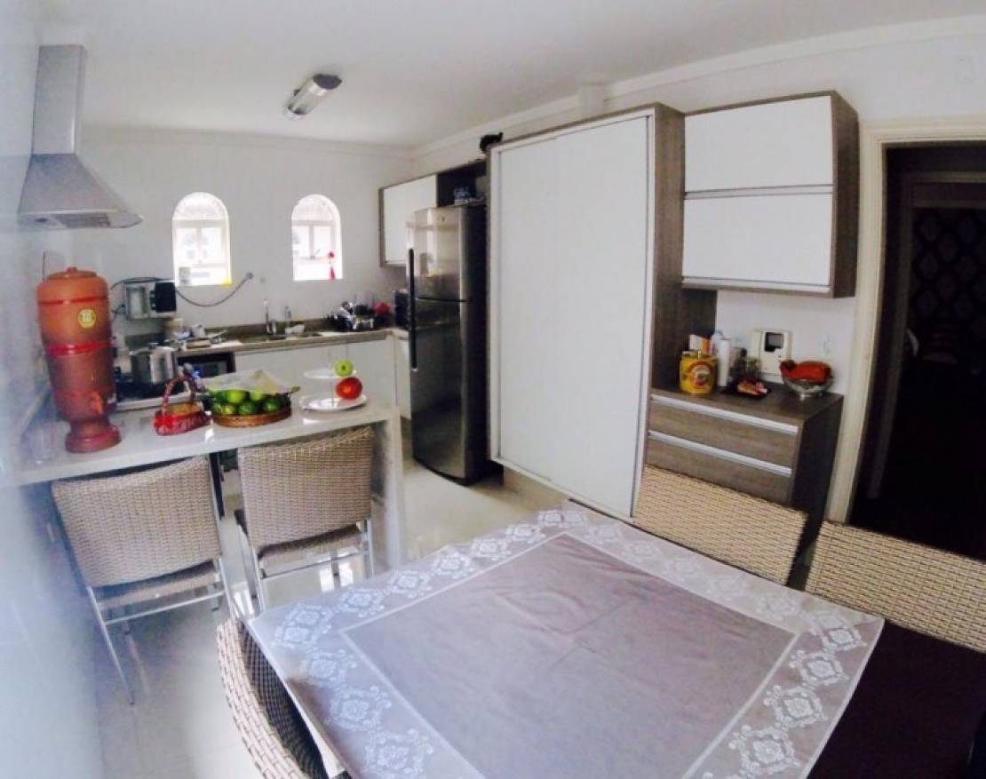 4 dormitórios sendo 2 suítes, com armários embutidos, 5 banheiros, sala para 3 ambientes, lareira, sauna , dependência de empregada com banheiro, cozinha ampla com armários embutidos, área de lazer com churrasqueira, piscina, salão de festas e 4 vagas de garagem cobertas.